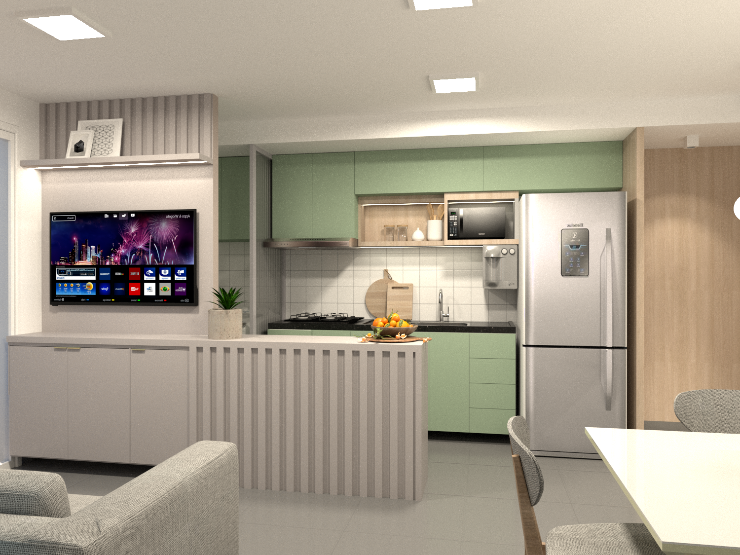 Ambientação interna, com foco na estética, conforto e personalização dos espaços.